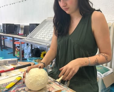Un croquis a été réalise avec de la craie grasse ainsi qu'avec de la peinture acrylique dorée avant de créer la sculpture.